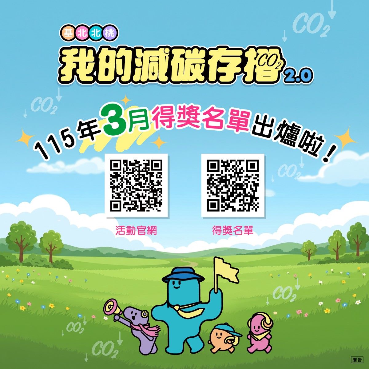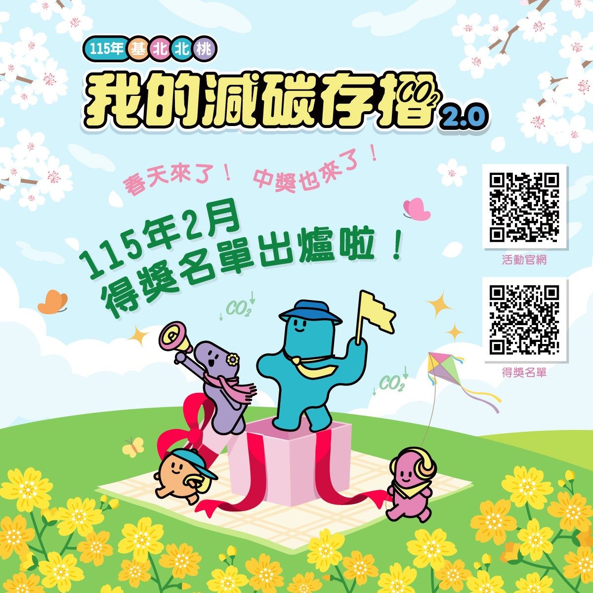 基北北桃「我的減碳存摺2.0」115年2月份月月兌好禮活動中獎名單於今(25)日公布!恭喜各位得獎者,得獎名單請詳活動網站(連結)。月月兌部分獎項 (如:美式咖啡、霜淇淋等)將以悠遊付APP訊息推播方式通知領取,請得獎者留意手機APP推播訊息;其餘獎項將依序通知及進行寄送作業,也請耐心等候!